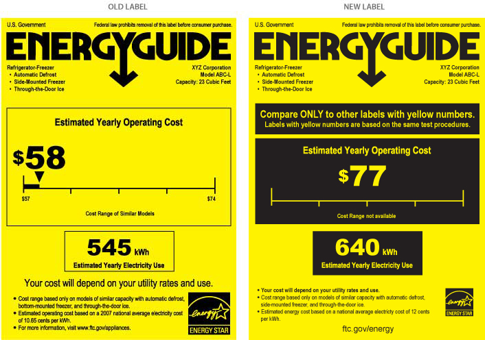 You’ve probably seen those yellow EnergyGuide labels when you’ve shopped for an appliance – they tell you how much it will cost to operate the appliance each year. Well, if you’re looking for buy a new refrigerator you’ll notice that the EnergyGuide labels have been redesigned and that might leave you asking why?